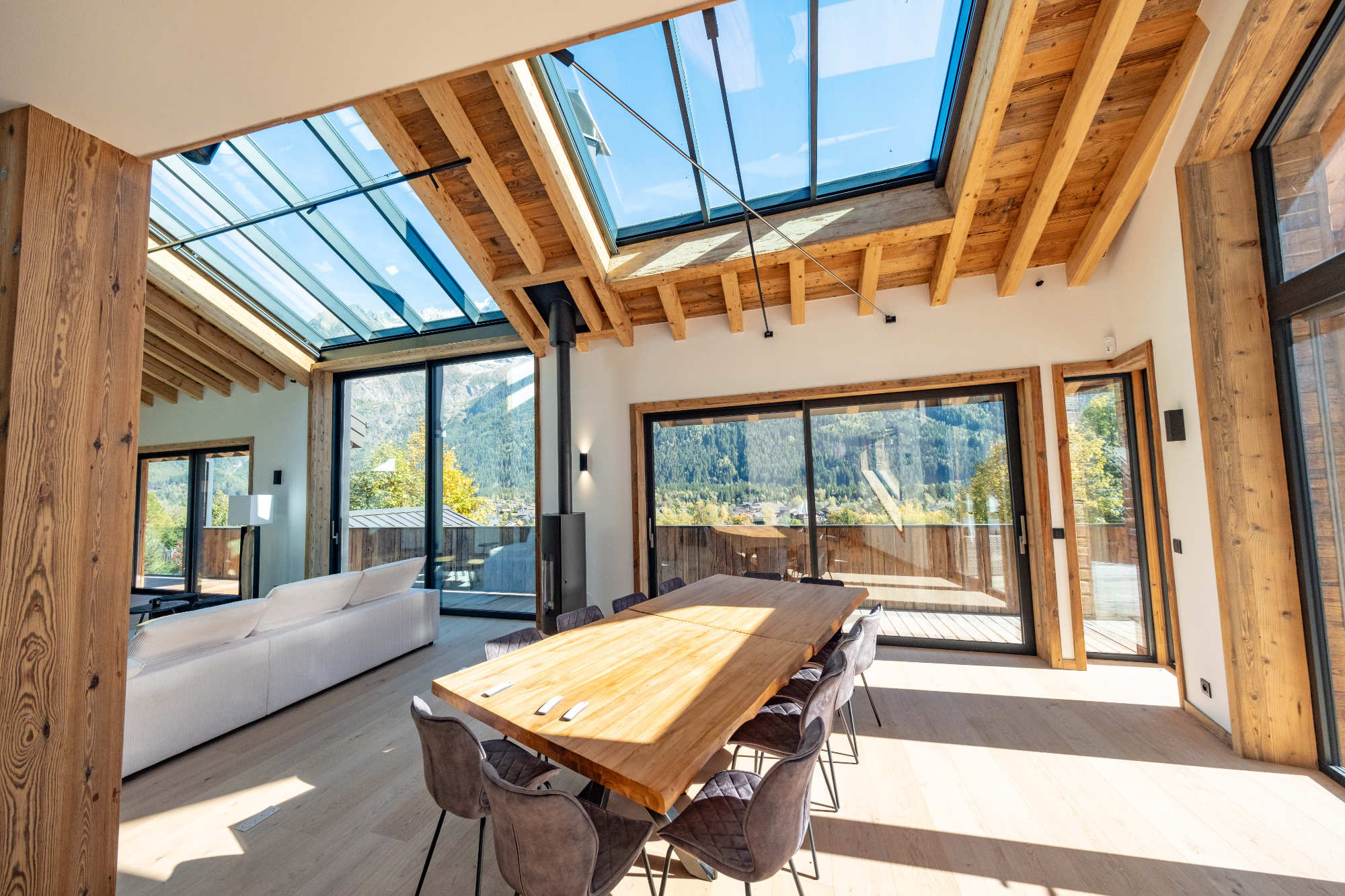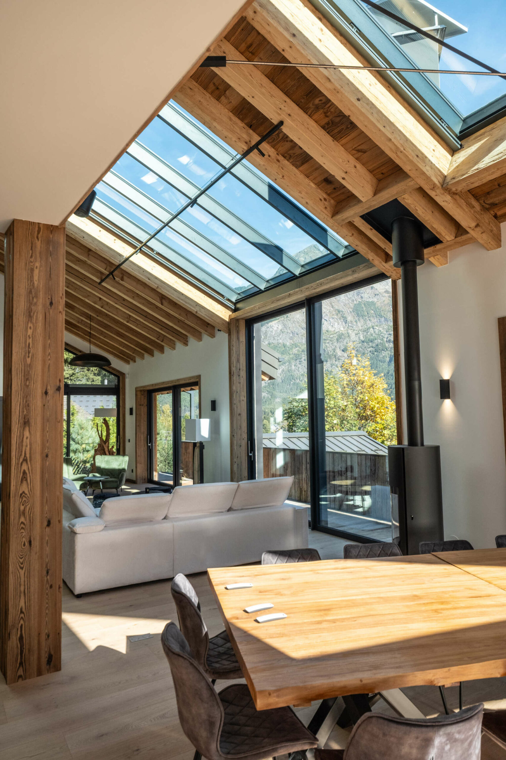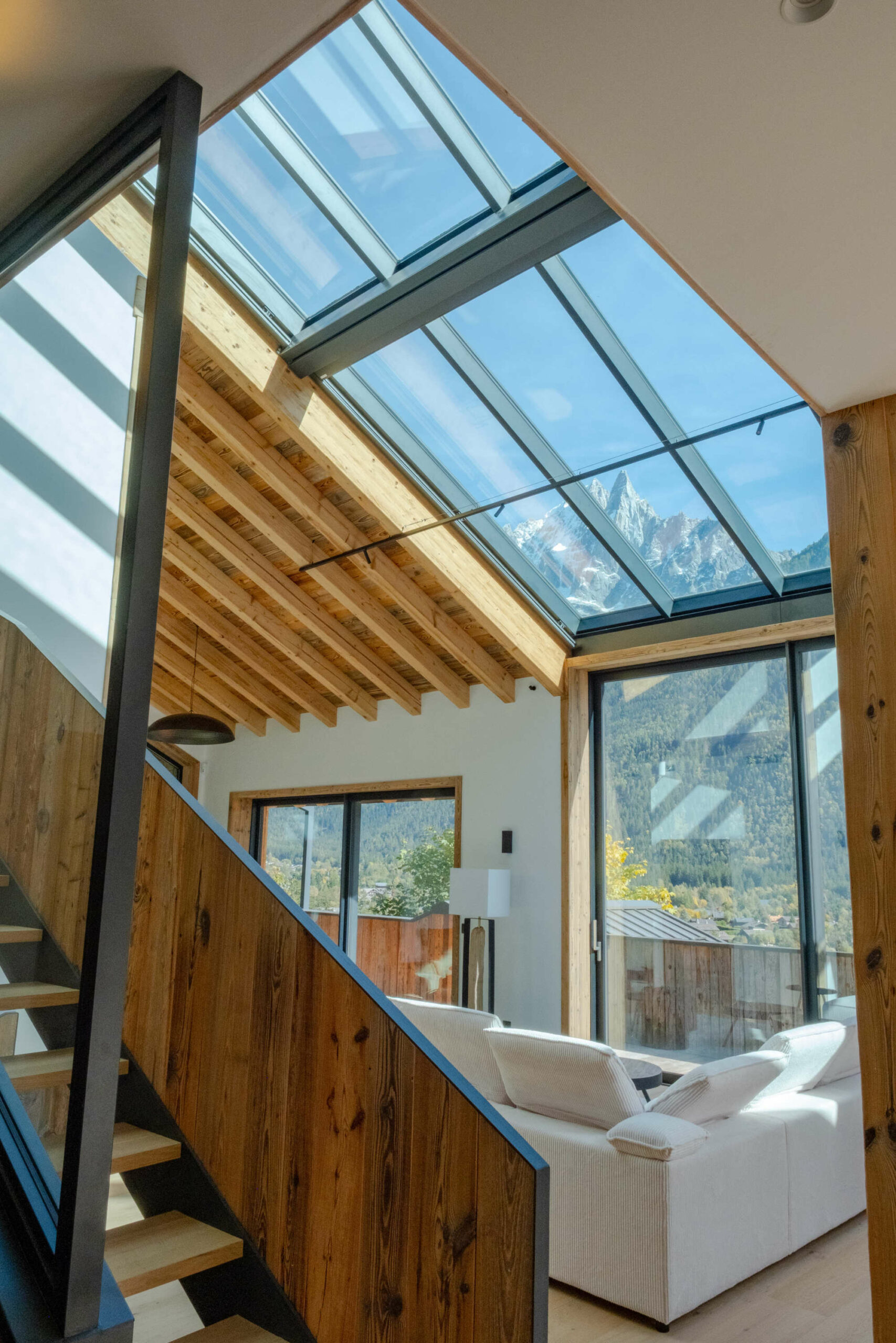 Au cœur de cette transformation se trouve la plus grande verrière jamais posée par l’agence. Cette prouesse technique maximise l’entrée de lumière naturelle et offre une immersion totale dans le paysage de la Vallée, faisant des Aiguilles un spectacle permanent et en assurant une immersion totale dans le décor.