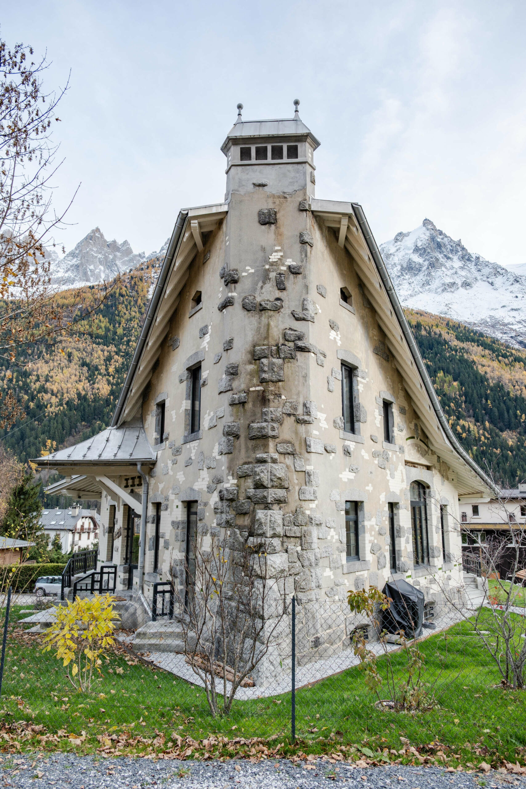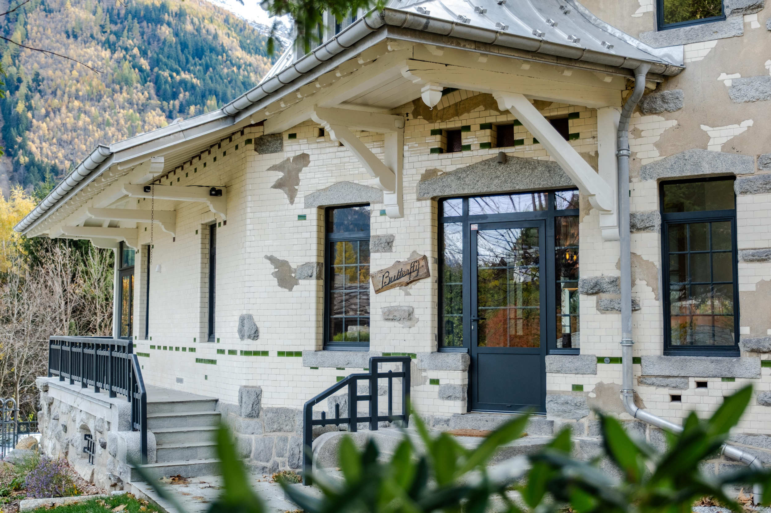 La Villa Butterfly occupe une place particulière pour le collectif chamoniard. Cette maison n’est pas une simple habitation ; c’est un repère visuel, une silhouette familière que tous les Chamoniards connaissent et reconnaissent. Plus remarquable encore est sa conception structurelle unique : La Villa fut construite selon une forme d’étrave (en proue). Cette particularité n’est pas qu’esthétique ; elle est une réponse ingénieuse et audacieuse à l’environnement montagnard. L’édifice a été pensé pour lutter contre les éventuelles avalanches, sa forme permettant de fendre et d’écarter les masses de neige de chaque côté. Le nom même de la Villa n’est pas un hasard : l’architecte d’origine s’est inspiré de l’histoire et de l’esthétique du célèbre opéra de Puccini, Madame Butterfly. Ce choix confère à la demeure une dimension romantique et artistique.